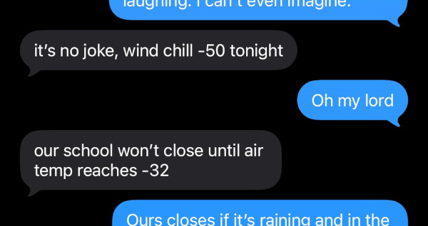 Last week, I texted with my boy JC in Minnesota to see how the winter weather was hitting them. Here are some highlights.