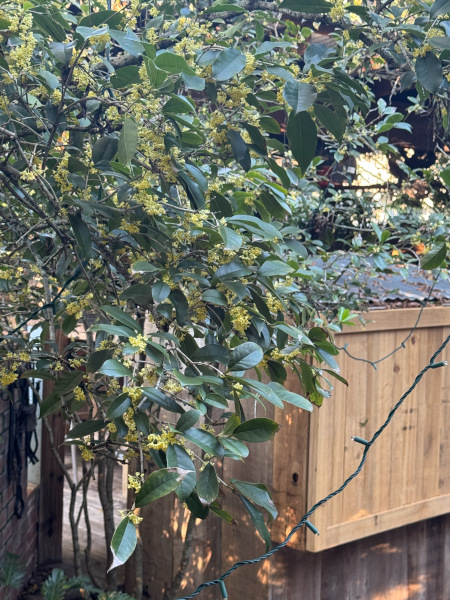 Sweet olives bloomed this week. Doesn't look like much, but the whole yard smells so good.