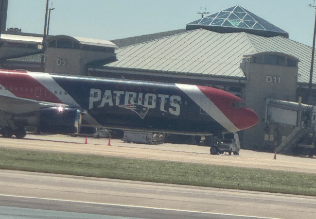 When we flew back from the boat show, the Saints were playing the Patriots. Pats travel in style.